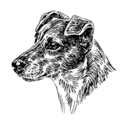 Selbstklebende, transparente Autoaufkleber mit schwarzer Federzeichnung in Konturenform des Hundes. Größe: ca. 15 cm, je 1 Stück