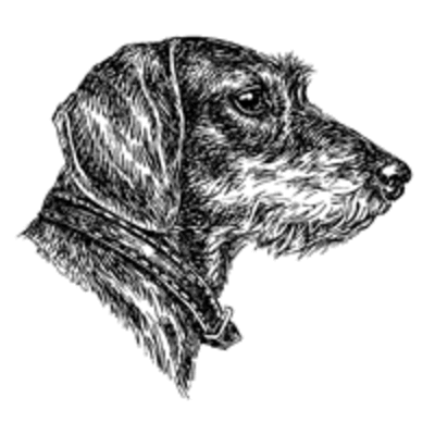Selbstklebende, transparente Autoaufkleber mit schwarzer Federzeichnung in Konturenform des Hundes. Größe: ca. 15 cm, je 1 Stück