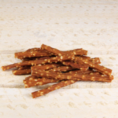 Schmale Stückchen feinsten, weichen Filetfleisches im wiederverschießbaren Beutel. Ca. 10-15 cm lang und nicht einmal 1 cm breit. Inhalt: 100 g ...