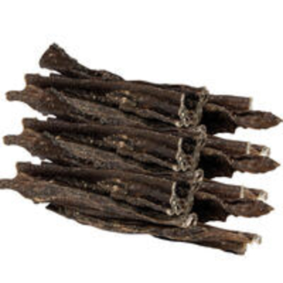 Feine, hypoallergene Hautstreifen vom europäischen Hirsch. Hirschhaut ist zäh, aber ein wenig dünner und weicher als die von Rindern. Ideal auch für Allergiker, sowie sensible Hunde und kleine bis mittelgroße Rassen. Inhalt: 100 g