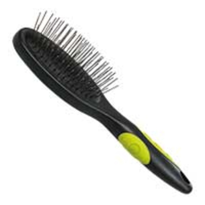 Ergonomisch geformte Bürste mit weichen Silikonpolstern zur Vermeidung von Druckstellen an der Hand bei längerer Fellpflege. Diese Bürste ist mit einer Vielzahl stumpfer, abgerundeter Stahlstifte ausgestattet, die beweglich gelagert sind und auch zu starkem Druck nachgeben können. Die Bürstenstifte glätten langhaariges Fell und beseitigen leichte Verwirrungen. Größenangabe: S: Länge: 20 cm, Arbeitsbreite: 8 cm M: Länge: 23 cm, Arbeitsbreite: 10 cm