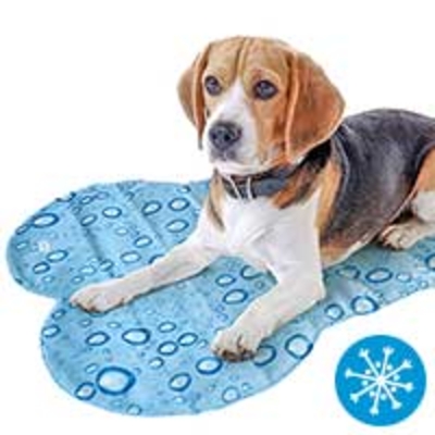 Knochenförmig geschnittene Gel-Kühlmatte. Die Matte ist beidseitig verwendbar (Rückseite einfarbig hellgrau) und kühlt bei Körperkontakt selbsttätig. Ideal als Liegematte an heißen Tagen. Die BUBBLE BONE lässt sich zum Lagern oder Transportieren gut aufrollen, die Reinigung der pflegeleichten Kühl-Matte ist ggf. ganz einfach mit einem feuchten Lappen möglich. Größe: ca. 86 x 61 cm, Farbe: blau/grau