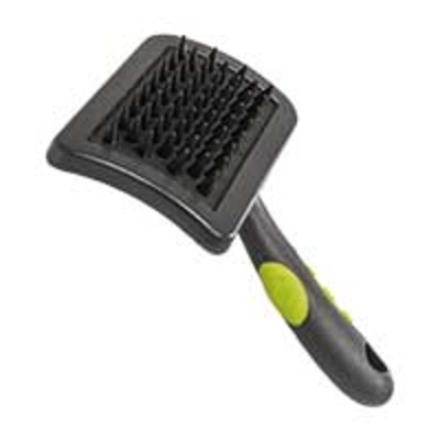 Eine Kombibürste für mittlere bis langhaarige Felltypen. Die 1, 5 cm langen Nylon-Pins mit runden Noppen-Spitzen massieren sanft die Haut und lösen aufliegende Hautschuppen. Gleichzeitig bürsten die 5 mm kürzeren Borsten das Fell aus, entfernen lose Haare und bringen seidigen Glanz. Für alle Felltypen. Größenangabe: S: Länge: 14 cm, Arbeitsbreite: 6 cm M: Länge: 15 cm, Arbeitsbreite: 8 cm L: Länge: 19 cm, Arbeitsbreite: 9 cm   ...