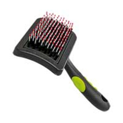 Eine Kombibürste für mittlere bis langhaarige Felltypen. Die 1, 5 cm langen Nylon-Pins mit runden Noppen-Spitzen massieren sanft die Haut und lösen aufliegende Hautschuppen. Gleichzeitig bürsten die 5 mm kürzeren Borsten das Fell aus, entfernen lose Haare und bringen seidigen Glanz. Für alle Felltypen. Größenangabe: S: Länge: 14 cm, Arbeitsbreite: 6 cm M: Länge: 15 cm, Arbeitsbreite: 8 cm L: Länge: 19 cm, Arbeitsbreite: 9 cm