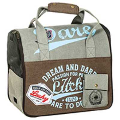 Handtasche aus robuster Segeltuch-Qualität mit aufgesetzter Tasche und hochwertigen YKK-Reißverschlüssen in top-moderner Optik. Material: Canvas-Baumwolle. Für Hunde bis 8 kg. Größe ca. 32 x 26 x 37 cm