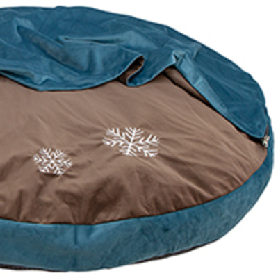Großes Rundbett mit integrierter, abnehmbarer Schlupf-Decke. Der unglaublich kuschelig-weiche Mikrofaser-Bezug ist ebenfalls abnehmbar (per Reißverschluß) und auf der Liegefläche mit feinen Stickereien verziert. Ein ausgesprochen hochwertiges Hundebett in edlen Farben und aufwendiger Verarbeitung. Mit Anti-Rutsch Boden. Größe: 90 cm, Höhe ca. 17 cm      Â
