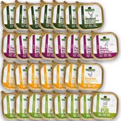 Dieses Paket besteht aus: 7 x 200g Wildfleisch mit Gemüse, Waldbeeren und Nachtkerzenöl 8 x 200g Pferd mit Mischgemüse, Hagebutten und Bärlauch 7 x 200g Hühnerklein mit Linsen, Haferflocken und Kokosöl 8 x 200g Lamm pur
