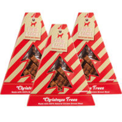 Leckere Hühnchenfleisch-Tannenbäumchen in einer schicken, festlichen Verpackung. Die niedlichen Bäumchen sind fettarm, glutenfrei und werden ohne Zucker- oder Salzzusatz hergestellt. Eine feine Leckerei für Ihren Vierbeiner, oder auch als Mitbringsel für andere Hundehaushalte zur Weihnachtszeit. Größe: ca. 18x 16x 4 cm, Snacks: ca. 4 x 3 x 1 cm