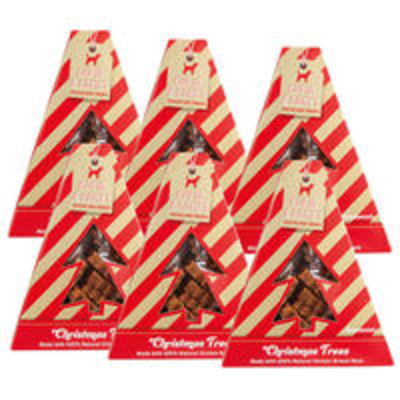 Leckere Hühnchenfleisch-Tannenbäumchen in einer schicken, festlichen Verpackung. Die niedlichen Bäumchen sind fettarm, glutenfrei und werden ohne Zucker- oder Salzzusatz hergestellt. Eine feine Leckerei für Ihren Vierbeiner, oder auch als Mitbringsel für andere Hundehaushalte zur Weihnachtszeit. Größe: ca. 18x16x4 cm, Snacks: ca. 4 x 3 x 1 cm