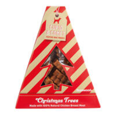 Leckere Hühnchenfleisch-Tannenbäumchen in einer schicken, festlichen Verpackung. Die niedlichen Bäumchen sind fettarm, glutenfrei und werden ohne Zucker- oder Salzzusatz hergestellt. Eine feine Leckerei für Ihren Vierbeiner, oder auch als Mitbringsel für andere Hundehaushalte zur Weihnachtszeit. Größe: ca. 18x16x4 cm, Snacks: ca. 4 x 3 x 1 cm