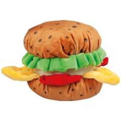 Ein Hamburger aus Plüsch! Mit Salatblatt, Ketchup und richtig viel Käse! Nur leider nicht zum Essen, sondern aus weichem Polyesterplüsch. Aber vielleicht ist dieses Ball-ähnliche Spielzeug ja genau das Richtige für Ihren kleinen Hund? Mit einem Quietscher. Größe ca. 13 cm