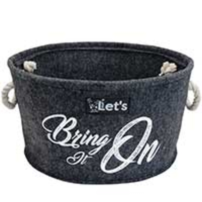 Dekorativer, runder Korb aus wertig anmutendem Filz. Einen so praktischen und auch noch schicken Ordnungshelfer wie diesen zeigt man gerne! Aus 100% hygienischem Polyester mit Baumwollkordeln. Größenangabe: Ø: 37 cm x Höhe: 20 cm Hinweis: Der Korb wird ohne Dekoration und Spielzeug geliefert.