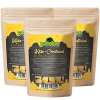 Köstlich duftender Hunde-Hartkäse weich aufgepoppt Knusprig-krosse Brocken aus feinstem Hartkäse-Granulat mit einem Hauch Kartoffel. Diese Schecker Käse-Croutinies können vom Hund recht leicht gekaut werden, und sind somit auch für Senioren und Hunde mit Zahnproblemen bestens geeignet. Ein perfekter Snack auch für kleinere Rassen! Größe: ca. 1, 5 cm ...