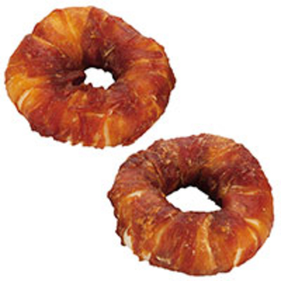Dicke Rinderhaut-Ringe mit leckerem Entenfleisch umwickelt. Diesen Snack wird Ihr kleiner Vierbeiner lieben! Genüsslich wird er das Enten-Muskelfleisch abknabbern, um dann viel Zeit beim Kauen der dicken Rinderhaut zu verbringen. Ein perfekter Hunde-Kauartikel! Bitte wählen Sie eine zum Hund passende Größe. Größe: Ø ca. 7, 5 cm, 2 Stück