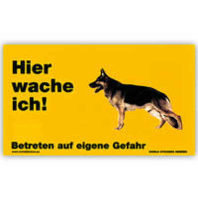 Warnschild "Hier Wache Ich!" Größe 17 X 10 Cm, Gelb