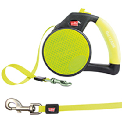 Automatik-Rollleine mit gut sichtbarem Gurtband und ergonomischem Gelgriff. Der auch für größere Hände geeignete Griff passt sich optimal der Hand an und erlaubt so ein ermüdungsarmes Halten auch bei stark ziehendem Hund. Im Sommer wirkt das Gel zudem angenehm kühlend. In Farbe Gelb zudem mit besonders gut sichtbaren Reflex-Elementen. Länge: 5 m Größe L geeignet für Hunde bis 50kg