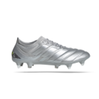 Hier siehst Du das Performance-Modell, den COPA 20.1 SG. Der adidas Rasenfußballschuh kommt mit Spezialsohle und Metall-Schraubstollen für matschigen aufgeweichten Naturrasen. Er ist die Nr. 2 direkt hinter dem COPA 20+. Er gehört zum optisch spannenden ' Encryption Code' Pack und macht ordentlich was her in fettem Silbermetallic.