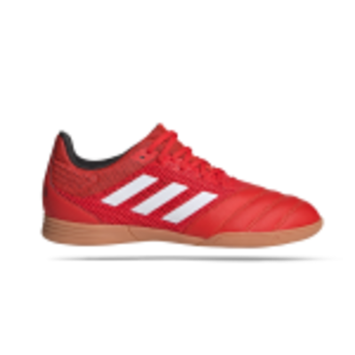 Hier siehst Du das Junior-Budget-Modell, den COPA 20.3 IN Sala Kinder. Der adidas Indoor-Fußballschuh in Kinder- und Jugendgrößen kommt mit abriebfester Hallensohle. Er ist sowohl für klassischen Hallenfußball als auch Futsal-Formate geeignet. Das Modell aus dem adidas Mutator Pack ist schon krass mit der fetten Schwarz-Rot-Kombi und den adidas 3-Stripes in knallendem Kontrast-Weiß.