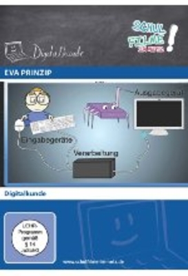 - er drückt doch nur eine Taste und sieht direkt das Resultat auf dem Bildschirm. Daher zeigt Bytie ihm, was es mit dem EVA-Prinzip auf sich hat. Es wird erklärt, was Eingabegeräte sind, dass der Computer die Eingaben verarbeitet und sie auf den Ausgabegeräten zur Verfügung stellt. Ein Alltagsbeispiel macht die Informationen für Kinder leicht verständlich, und Nerdie bittet Bytie um weitere Besuche.