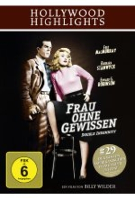 s/w Ein Versicherungsagent wird aus Liebe zum Komplizen einer gewissenlosen Frau, die ihren Mann ermorden will, um sein Vermögen zu kassieren. Phyllis Dietrichson verführt den jungen Versicherungsvertreter Walter Neff und überredet ihn, ihr bei einem Mordkomplott gegen ihren Mann zu helfen. Neff lässt eine hohe Lebensversicherung von Mr. Dietrichson unterschreiben und plant den Mord gemeinsam mit Phyllis. Erst scheint alles aufzugehen und der Tod wird für einen Unfall gehalten. Bis sich ausgerechnet Neffs Kollege und Freund Barton Keyes, der auf Betrügereien spezialisiert ist, eingeschaltet. Keyes kommt der Wahrheit immer näher und in Neff reift der Wunsch nun auch Phyllis loswerden zu wollen. Doch auch sie hat einen Plan. Als beide schließlich aufeinandertreffen, schließt Phyllis zuerst, doch sie verwundet Neff nur und er bringt sie um. Danach schleppt er sich mit letzter Kraft ins Büro, um sein Geständnis auf Tonband aufzunehmen.