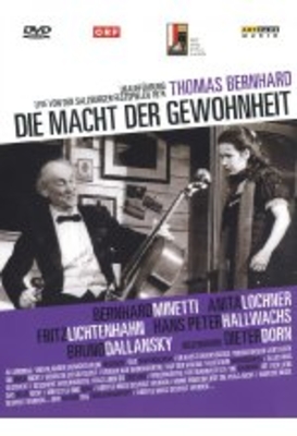Wer könnte Thomas Bernhard besser spielen als Bernhard Minetti? Der Theaterprovokateur Bernhard meinte selbst – eigentlich kann überhaupt nur der Charaktermime Minetti ihn spielen! – Nachdem es 2 Jahre zuvor einen Skandal gab und der uraufgeführte „ Ignorant und der Wahnsinnige“ mit Bruno Ganz gleich wieder abgesetzt wurde, ist diese Produktion von 1974 nicht nur Zeugnis dieser tiefen Verbindung des Autors mit „seinem“ Darsteller. „ Die Macht der Gewohnheit“ war vor allem der zweite Versuch, den unbequemen Dramatiker im elitären Salzburg doch noch zu etablieren. Es sollte gelingen … Regie führte dieses Mal nicht Claus Peymann, sondern der in Leipzig geborene Schauspieler, Regisseur und Intendant Dieter Dorn. Dass Minetti seine Aufgabe trefflich meisterte, zeigt ein 1977 uraufgeführtes Stück: „ Minetti. Ein Portrait des Künstlers als alter Mann“. Wer es geschrieben hat, muss nicht eigens erwähnt werden …