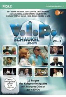 Es gibt keinen Prominenten der damaligen Zeit, der nicht von ihr vor die Kamera geholt wurde. Margret Dünser, Meisterin des Promi-Interviews, lockt mit ihrer Zielstrebigkeit auch den unerreichtesten Star aus der Reserve. Auf diese Art erfährt sie so manches, was andere Kollegen nie herausgebracht hätten. Diesmal begibt sie sich u. a. auf eine Hollywoodparty und trifft dort auf Stars wie Harry Belafonte, Robert Wagner oder Roger Moore. Filmstar Peter Fonda chauffierte die Dünser sogar in seinem Chrysler, Baujahr 1930, durch die Straßen des amerikanischen Filmzentrums.. . Diese Box enthält alle Folgen der V.I.P.-Schaukel aus den Jahren 1973 bis 1975. Ein Straßenfeger, bis zu 30 Millionen Deutsche versammelten sich vor dem Bildschirm, wenn Düsen-Dünser in die Welt der Reichen und Schönen aufbrach. Prominenteste Gäste sind diesmal u. a. Frank Sinatra, John Wayne, Dean Martin, Jack Lemmon, Omar Sharif, James Mason, Zsa Zsa Gabor, Harry Belafonte, Roger Moore, Jack Lemon, David.. .